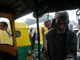 Pakliuvom į kamštį, rikšistas visai neblogai angliškai šneka, papasakojo apie Delio įžymybes. Bestovint kamštyje priėjo perkaręs skarmaluotas senelis su didele lazda, ištiesė ranką, žiūri gailiai. Nieko neduok, įspėjo rikšistas, net įstatymas draudžia duoti išmaldą elgetoms. Gerai sugalvojo valdžia, pamaniau – visi ubagai nuo bado išmirs ir gatvėse nebeliks paprašaikų. Štai ir turizmo agentūra, vienintelė tikra ir valstybinė, pasakė vairuotojas. Vietoj 20 daviau jam 40, nes rikšistas man labai patiko, toks protingas, labiau išsilavinęs už Vilniaus taksistus, čia faktas. Žmogus man širdingai padėkojo.