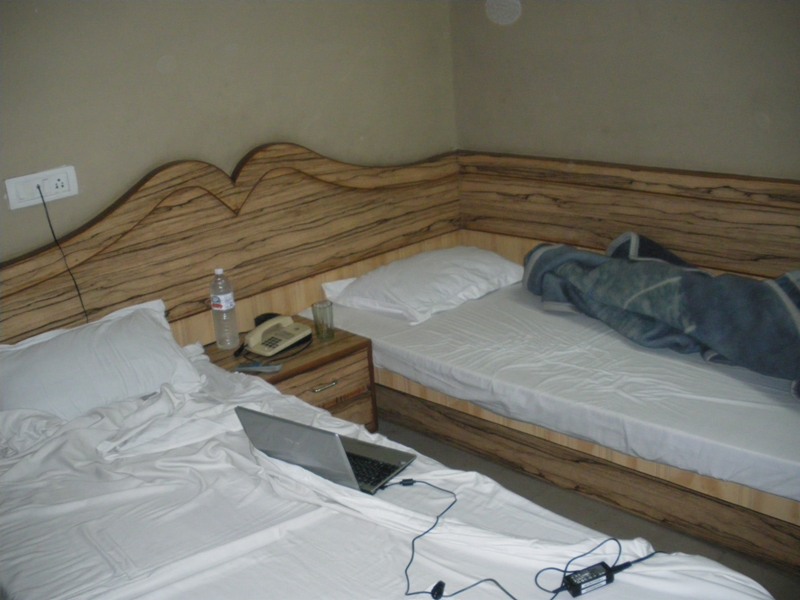 Viešbučio darbuotojas ėmėsi pildyti popierių, jam padėjo kiti apsnūdę kolegos. Iš pakampių pradėjo keltis daugiau darbuotojų, vienas jau neša mano čemodaną, kitas nuėjo paieškoti man vandens (paprašiau buteliuko). Ar yra kas iš Lietuvos čia, klausiu pagrindinio vadybininko. Dabar ne, sako, bet yra buvę. Nors sako, kad nereikia Indijos viešbučiuose mokėti iš karto, bet manęs paprašė depozito, kiek negaila. Daviau 500, pasakė, kad geriau būtų 1000. Daviau tūkstantį, sakau lieku skolingas 200. Ne, 350, sako, čia dar yra ir mokesčiai tokie ir tokie. Per daug esu pavargęs ginčytis dėl aštuonių litų.
