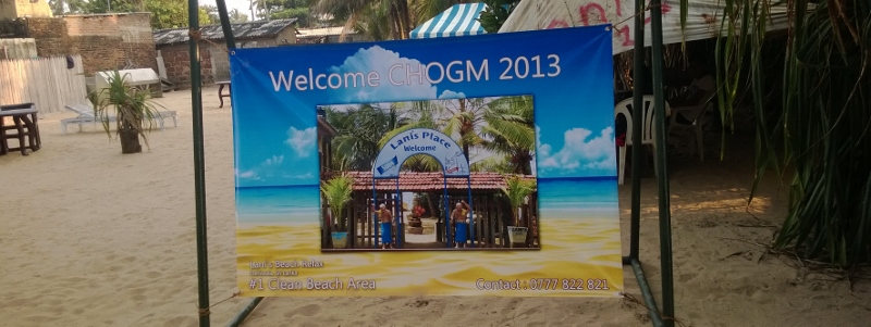 Šiandien miestas pusiau paralyžuotas. Centrinės gatvės uždarytos, visur pilna policijos, kareivių. Prasideda Sandraugos vyriausybių vadovų susitikimas – CHOGM. Buvusių britų kolonijų vadai susirinko į Kolombą globalinių problemų spręsti. Galle Road apkaišinėta egzotiškiausių šalių vėliavomis, toli gražu ne kiekvieną galiu atpažinti.