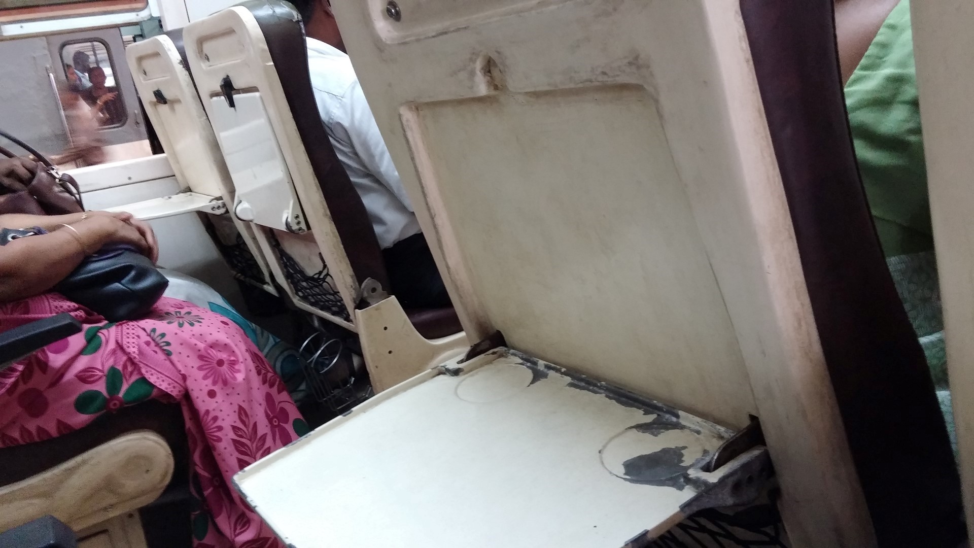 Mano traukinio Chilaw express aukščiausia klasė yra antra, ir tai gerai. Sėdynės platesnės, žmonės mažiau grūdasi. Vis tiek prisigrūdo. Gerai, kad prieš pusvalandį atsiradau, geroje vietoje sėdžiu.