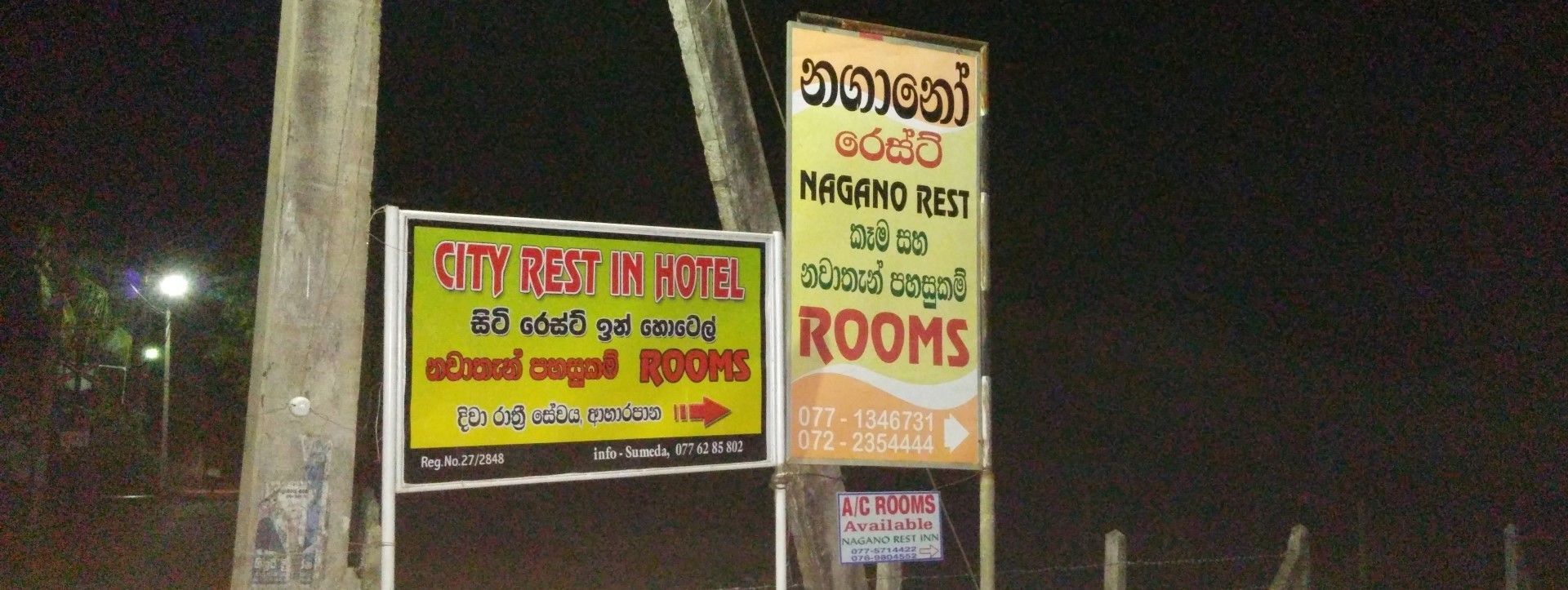 Užėjau, kambarių yra, bet už 2700. Būtų nebrangu, jei su kondicionieriumi, o už tokią skylę tūkstantį teduočiau. Vadybininkas sutiko su manim, kad čia per brangu, bet ne jis savininkas, šitie nakvynės namai valstybiniai. Patarė paieškoti miesto centre, ką ir padariau. Pasigavau tuktuką išėjęs, vežk į viešbutį sakau, bet kad būtų pigiau 2000. Viešnamiai irgi tinka, bet „Srilankan girls“ neužsakinėsiu. Į tuktuką įšoko kažkoks bachūras, važiuojam kartu. Kas čia dabar, klausiu. Čia mano draugas, nebijok, sako. Indiją prisiminiau. Centre pralėkėm kelis užrašus „rooms“, stuj, sakau. Čia blogi kambariai, tau per prasti bus, sako. Na, tegul veža į gerus, kol man nenusibodo. Čilavas (Šiluva?) miestas nedidelis, netrukus skersgatviais privežė prie kiek nuošalesnių viešųjų namų. Ten parodė kambarį už 1600, atrodė kukliai, bet švaru, elektra yra, ventiliatorius sukasi be triukšmo, vanduo bėga, man gerai.