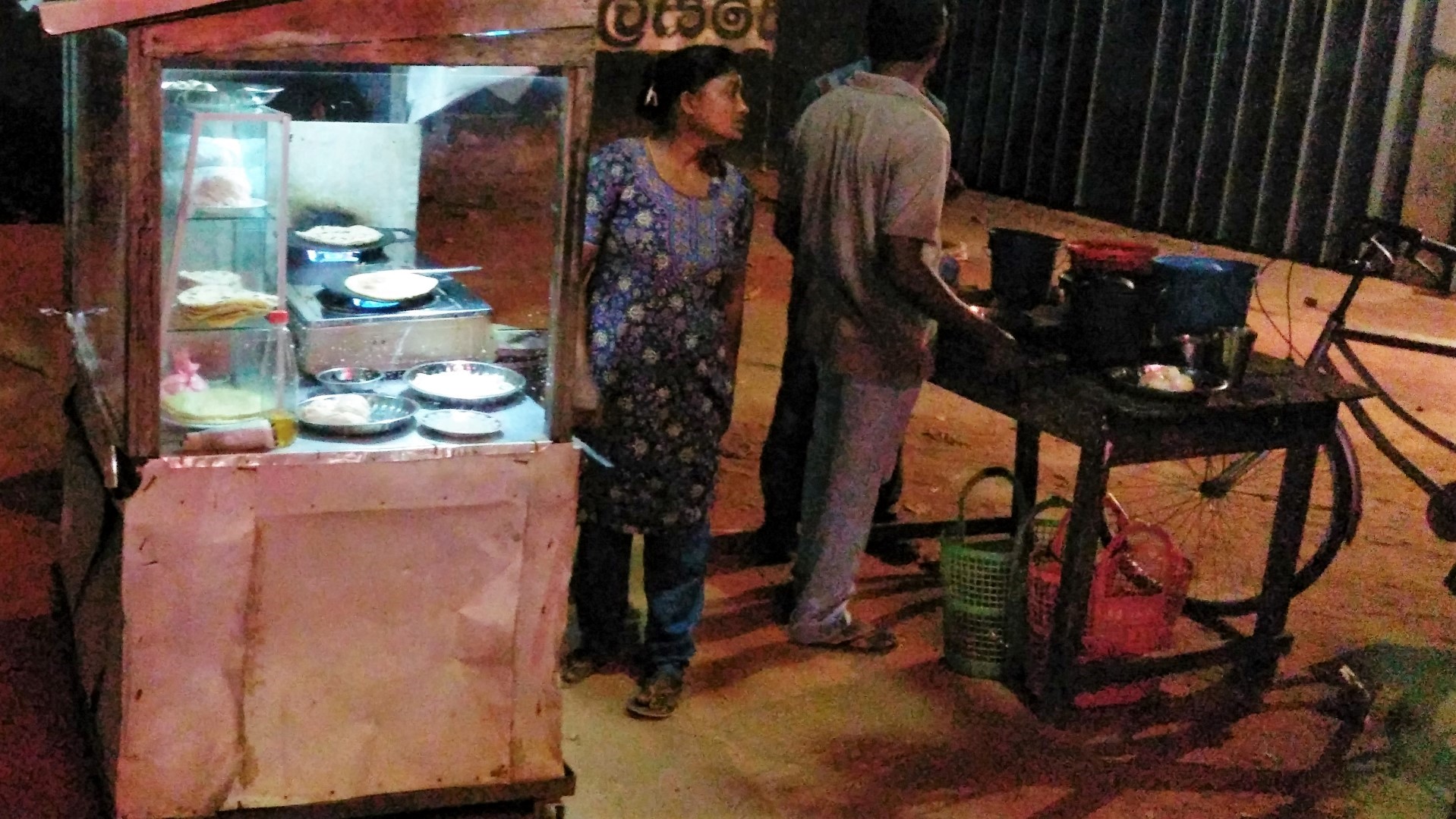 Mano viešnamyje restorano nėra, todėl išlindau ko nors nusipirkti vakarienei, dar ne vėlu. Kryžkelėje moteriškė blynus kepa, bet netoliese pamačiau Food City supermarketą – neblogas tinklas, jie kartais ir gatavų daržovių salotų turi, kas Šri Lankoje retai pasitaiko.